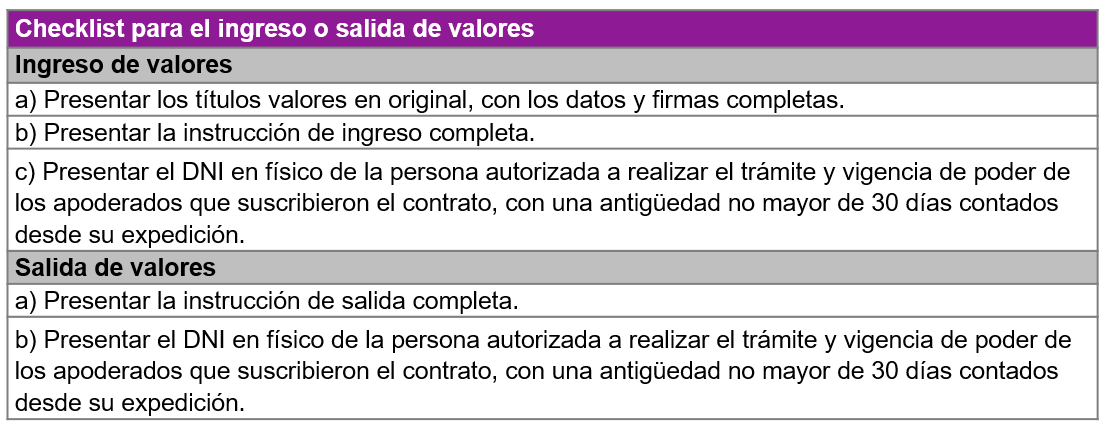 Puedes enviar un correo a Custodiadevalores@alfinbanco.pe. En respuesta te brindaremos todos los documentos y formatos que debe llenar como requisitos para contratar el servicio.